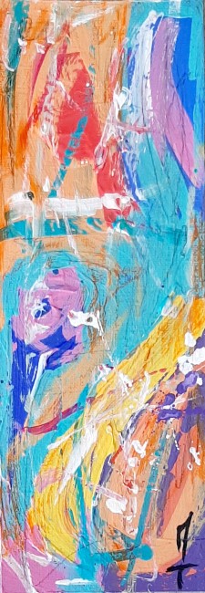 Peinture sur feuille, mini-oeuvre de 20x7 cm, utilisée comme marque-page, oeuvre unique et originale.