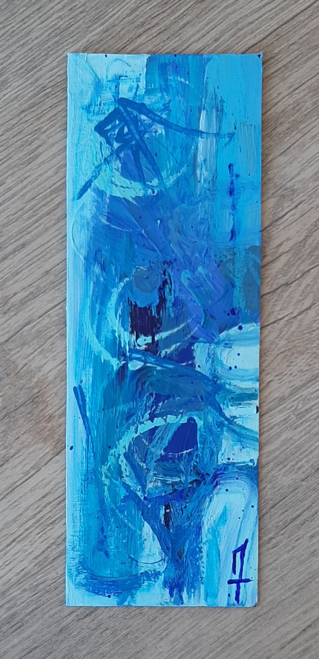 Peinture sur feuille, mini-oeuvre de 20x7 cm, utilisée comme marque-page, oeuvre unique et originale.