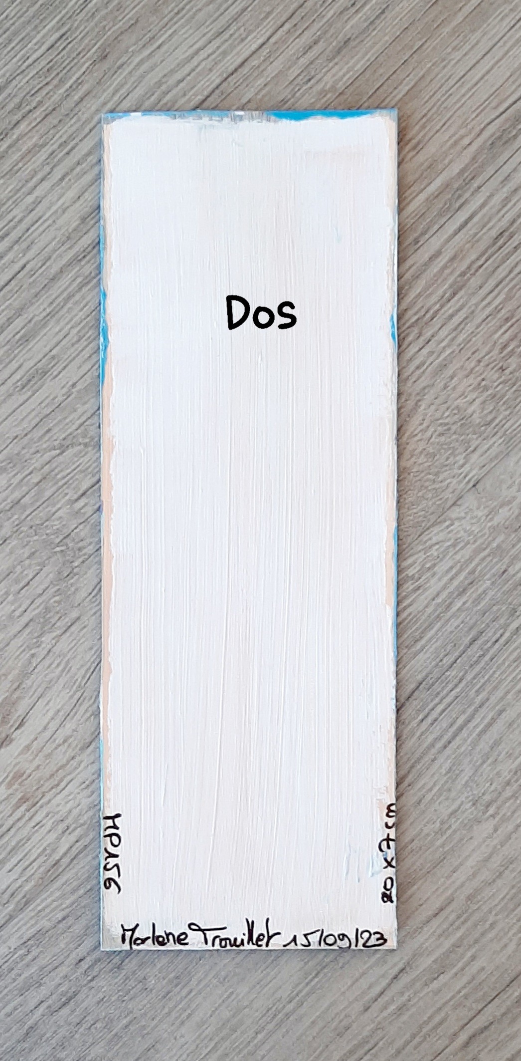 La peinture n'est pas lisse car il y a un peu de texture. Les couleurs peuvent varier d'un écran à un autre. L'oeuvre étant l'originale et faite à la main, il y a quelques tâches au dos de la feuille.