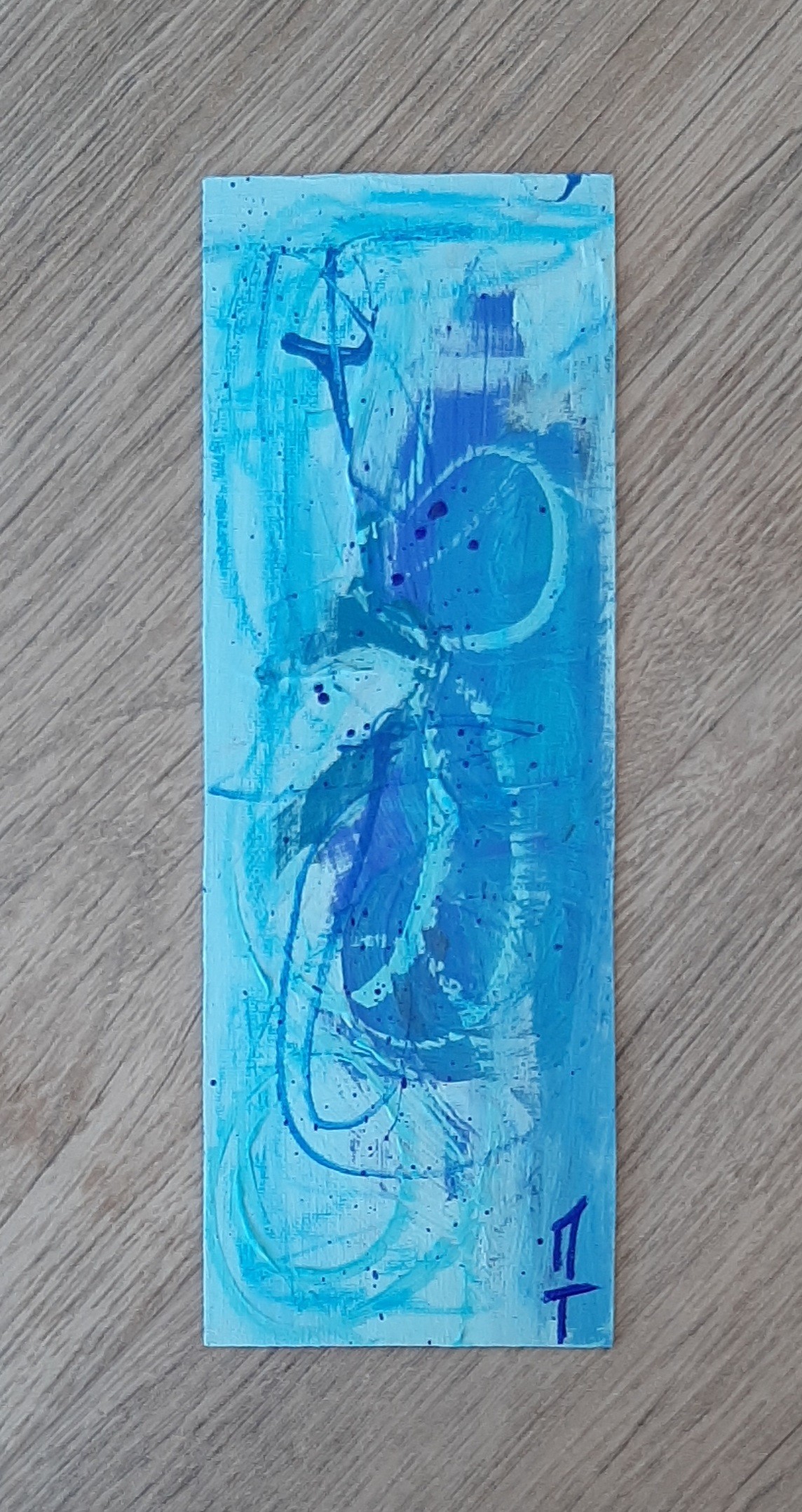 Peinture sur feuille, mini-oeuvre de 20x7 cm, utilisée comme marque-page, oeuvre unique et originale.