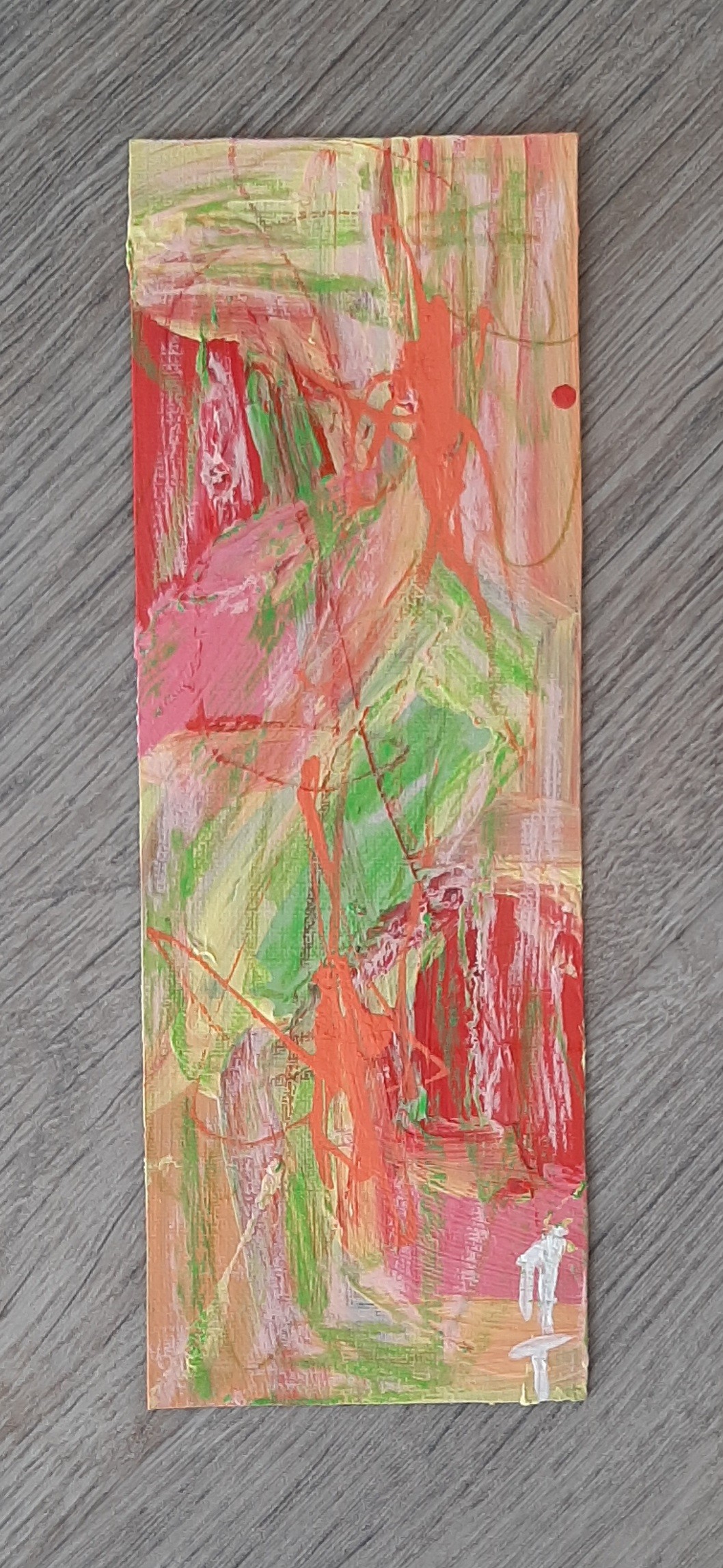 Peinture sur feuille, mini-oeuvre de 20x7 cm, utilisée comme marque-page, oeuvre unique et originale.