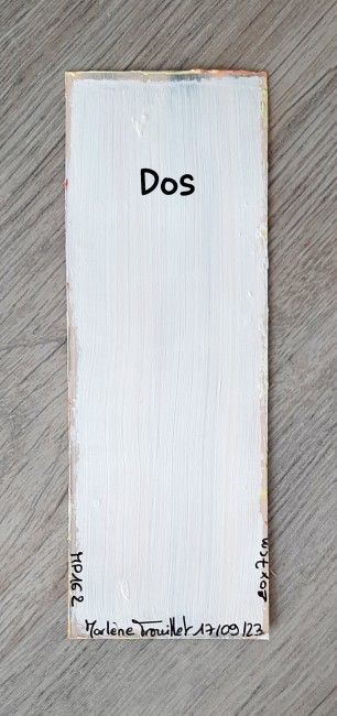 La peinture n'est pas lisse car il y a un peu de texture. Les couleurs peuvent varier d'un écran à un autre. L'oeuvre étant l'originale et faite à la main, il y a quelques tâches au dos de la feuille.