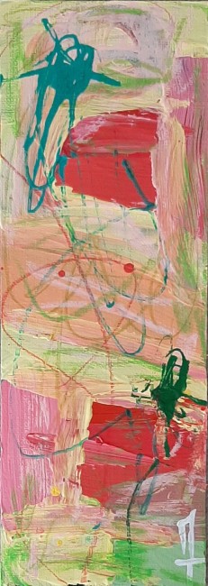 Peinture sur feuille, mini-oeuvre de 20x7 cm, utilisée comme marque-page, oeuvre unique et originale.