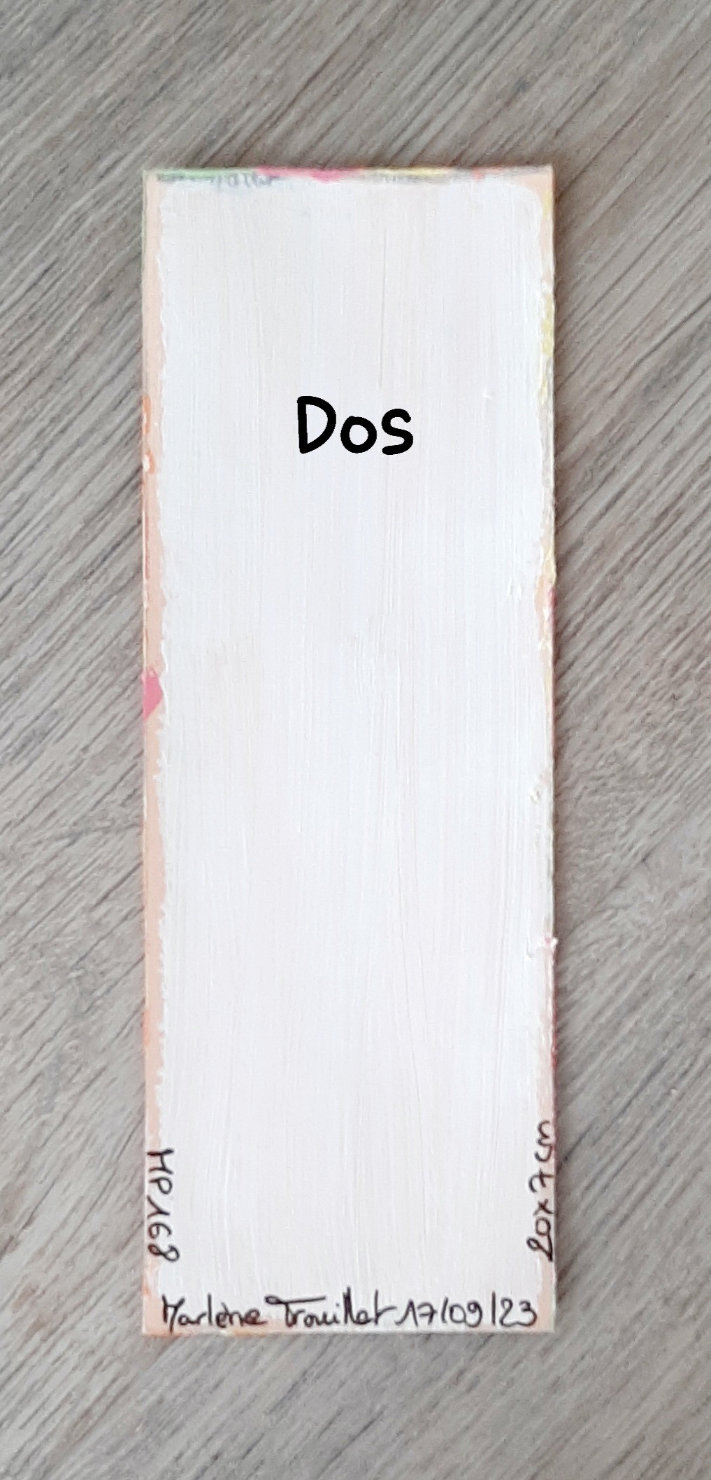 La peinture n'est pas lisse car il y a un peu de texture. Les couleurs peuvent varier d'un écran à un autre. L'oeuvre étant l'originale et faite à la main, il y a quelques tâches au dos de la feuille.