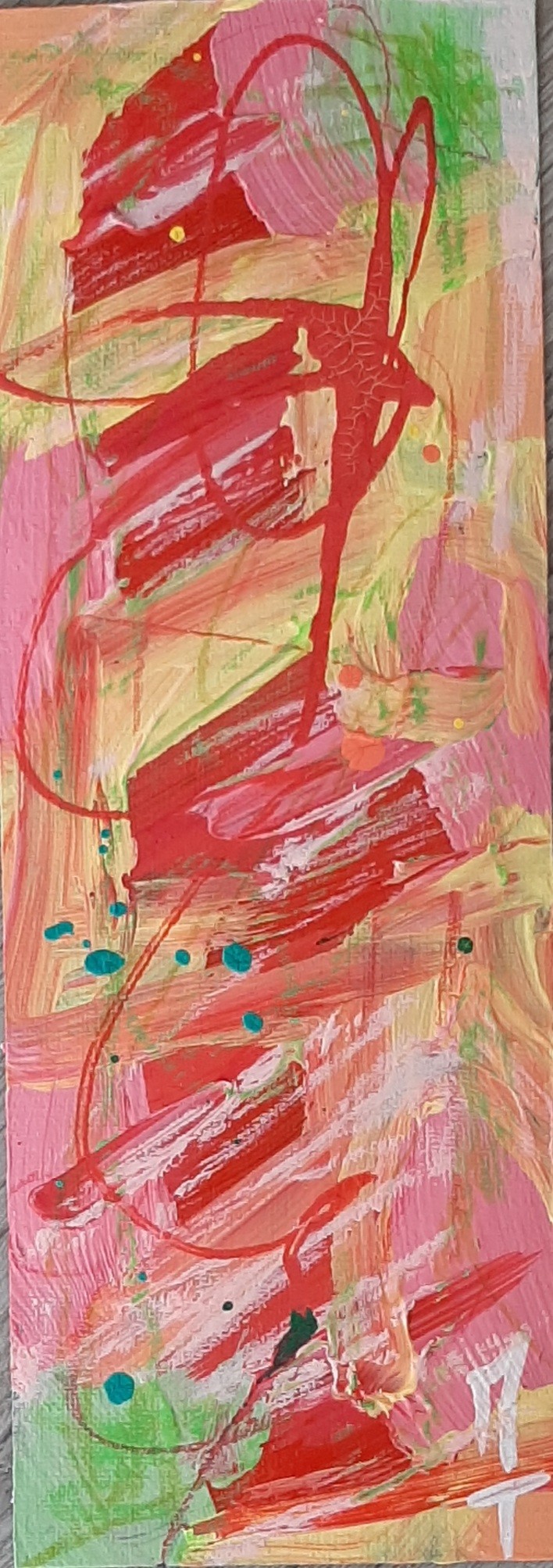Peinture sur feuille, mini-oeuvre de 20x7 cm, utilisée comme marque-page, oeuvre unique et originale.