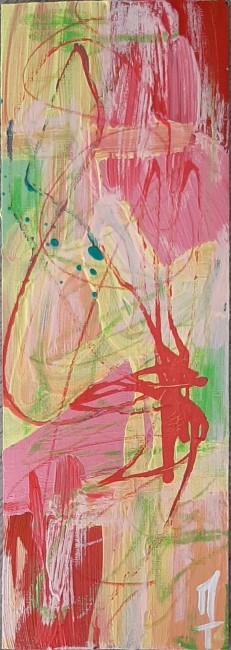 Peinture sur feuille, mini-oeuvre de 20x7 cm, utilisée comme marque-page, oeuvre unique et originale.