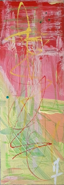 Peinture sur feuille, mini-oeuvre de 20x7 cm, utilisée comme marque-page, oeuvre unique et originale.