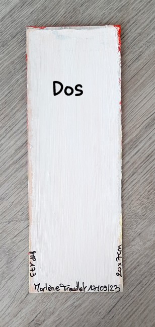 La peinture n'est pas lisse car il y a un peu de texture. Les couleurs peuvent varier d'un écran à un autre. L'oeuvre étant l'originale et faite à la main, il y a quelques tâches au dos de la feuille.