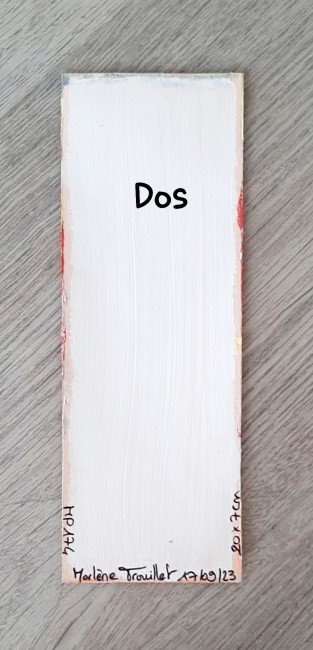 Peinture sur feuille, mini-oeuvre de 20x7 cm, utilisée comme marque-page, oeuvre unique et originale.