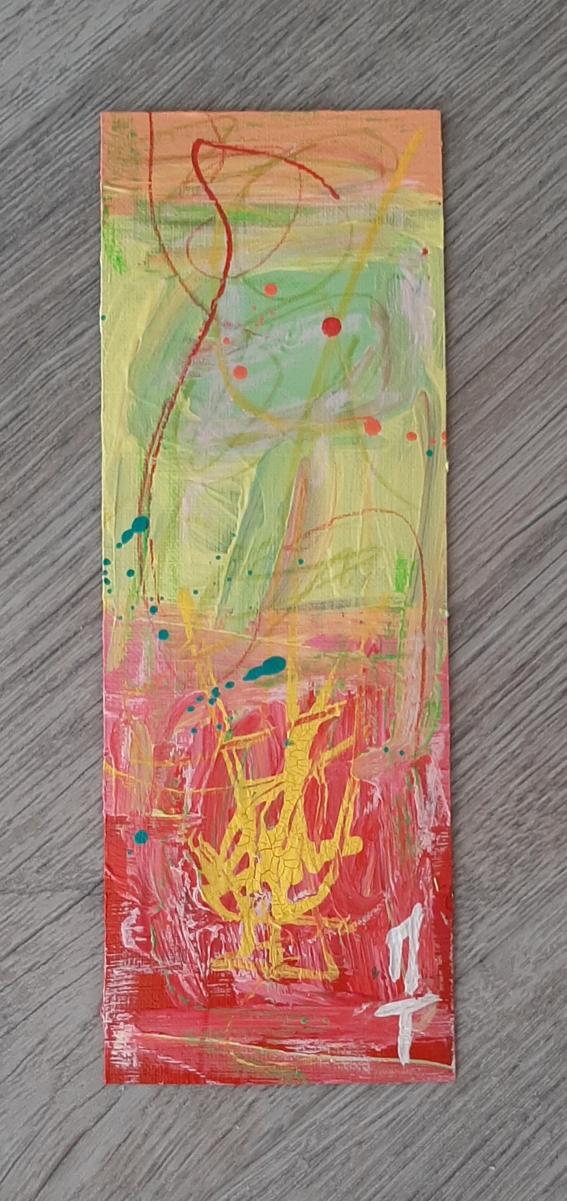 Peinture sur feuille, mini-oeuvre de 20x7 cm, utilisée comme marque-page, oeuvre unique et originale.