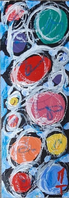 Peinture sur feuille, mini-oeuvre de 20x7 cm, utilisée comme marque-page, oeuvre unique et originale.