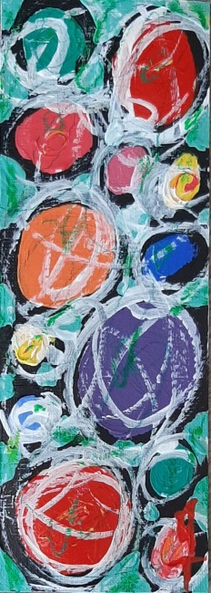 Peinture acrylique, crayons, 2 couches de vernis, signature à l'avant et au dos.