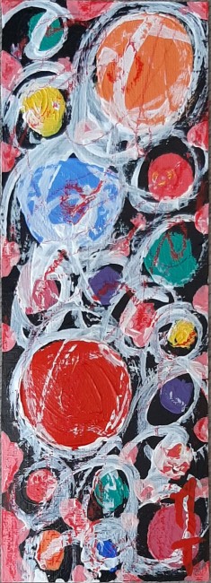 La peinture n'est pas lisse car il y a un peu de texture. Les couleurs peuvent varier d'un écran à un autre. L'oeuvre étant l'originale et faite à la main, il y a quelques tâches au dos de la feuille.