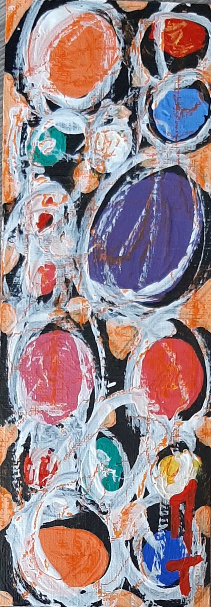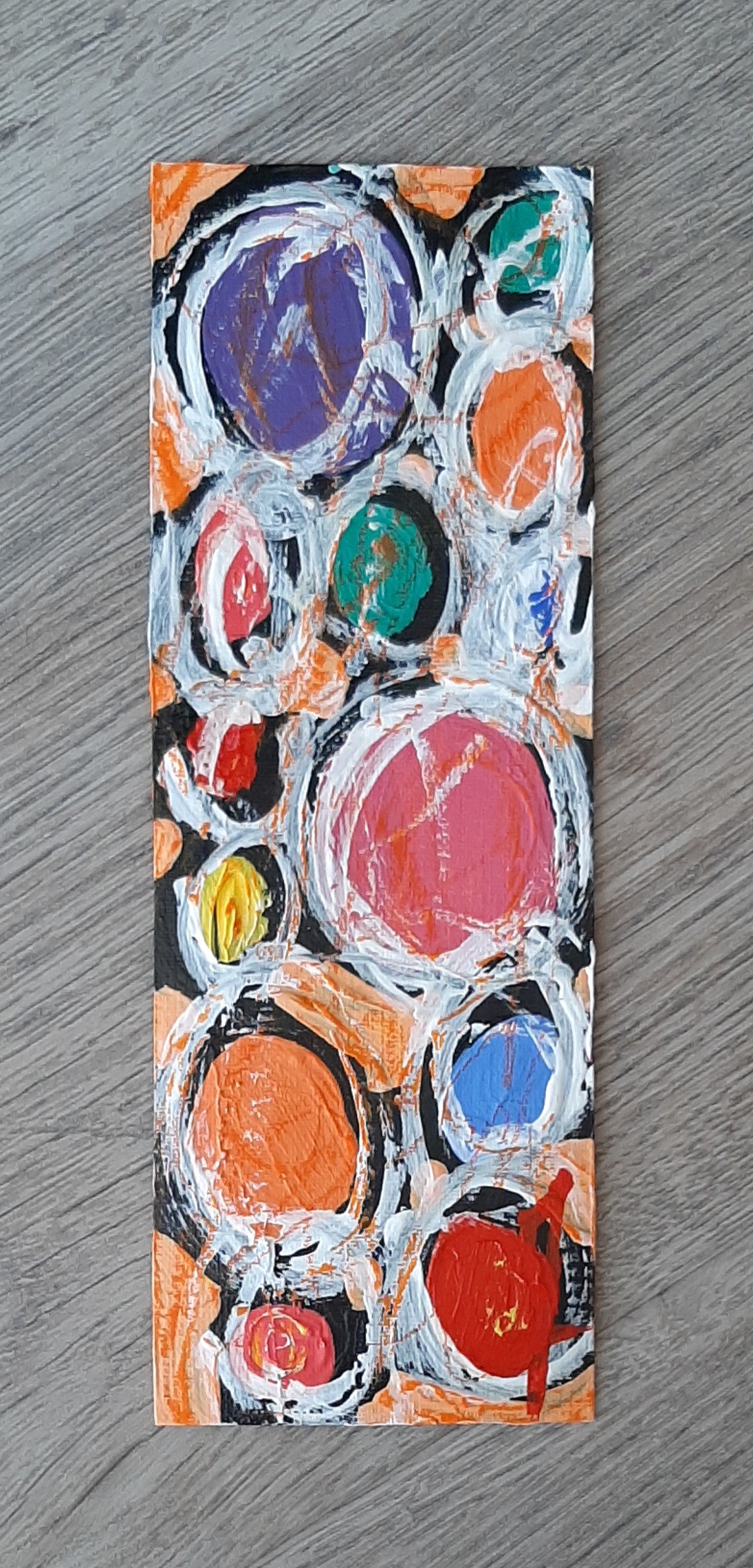 Peinture sur feuille, mini-oeuvre de 20x7 cm, utilisée comme marque-page, oeuvre unique et originale.