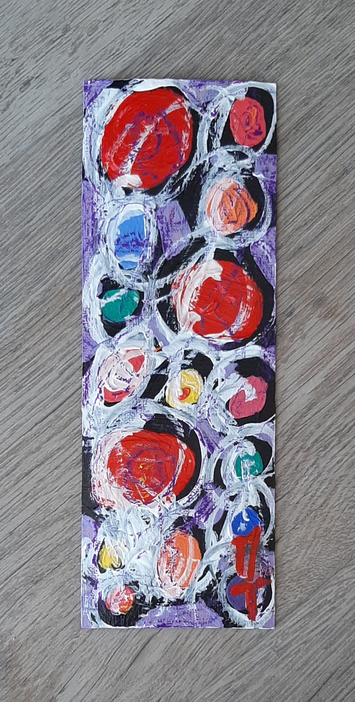 Peinture sur feuille, mini-oeuvre de 20x7 cm, utilisée comme marque-page, oeuvre unique et originale.