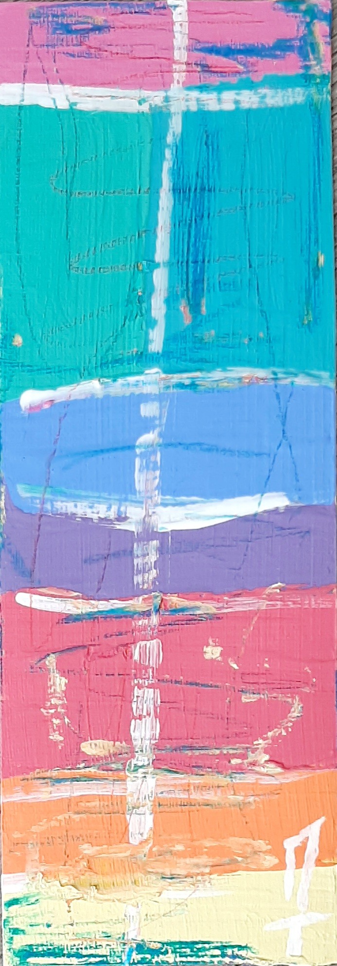 Peinture sur feuille, mini-oeuvre de 20x7 cm, utilisée comme marque-page, oeuvre unique et originale.