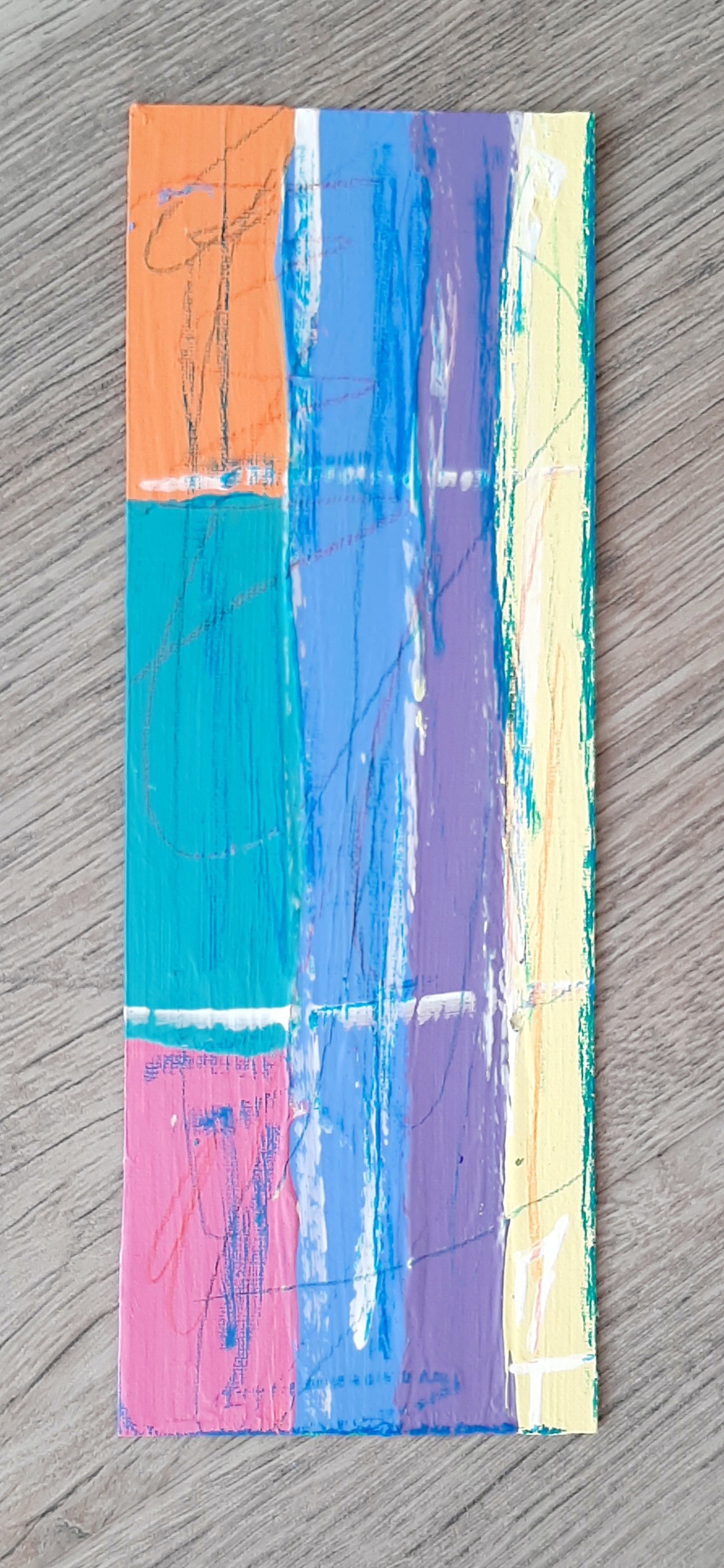 Peinture sur feuille, mini-oeuvre de 20x7 cm, utilisée comme marque-page, oeuvre unique et originale.