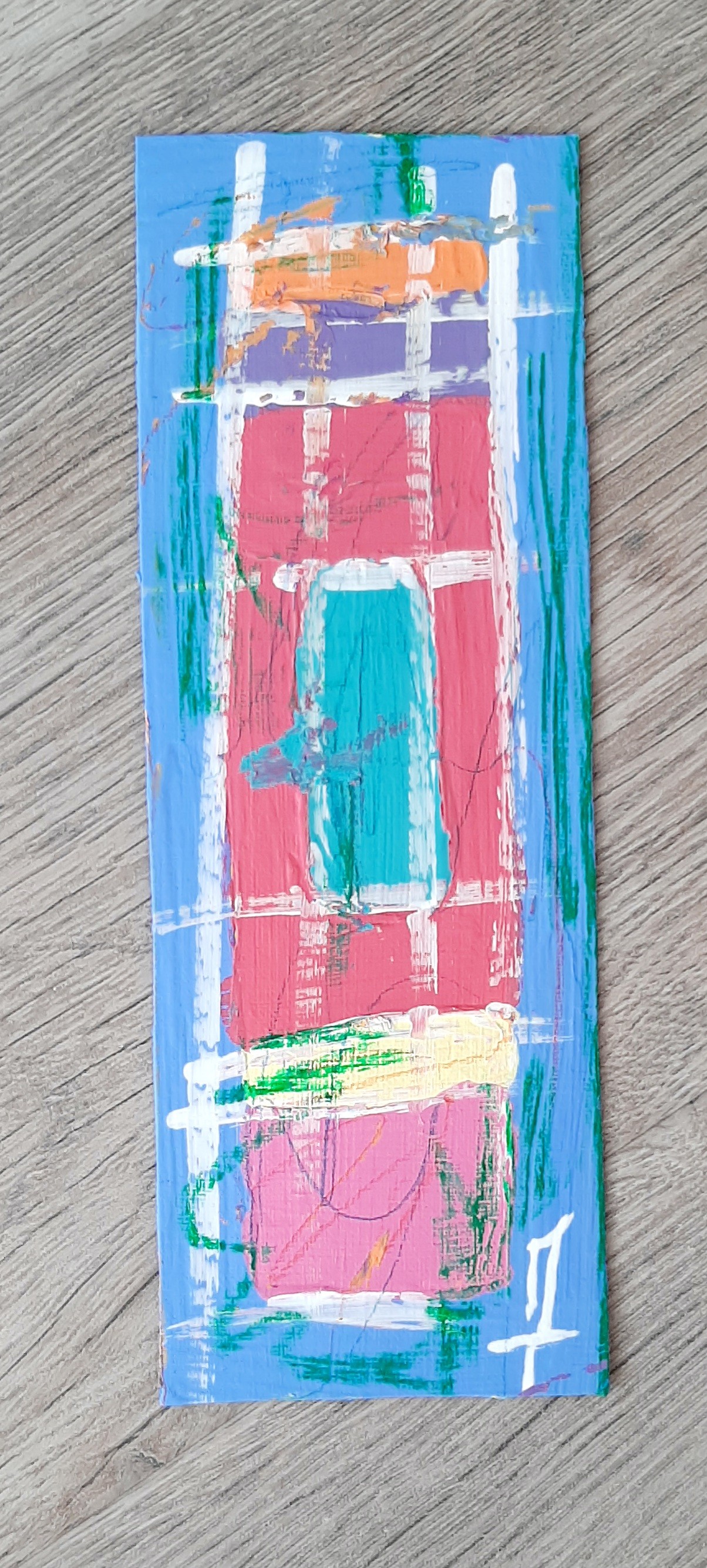 Peinture sur feuille, mini-oeuvre de 20x7 cm, utilisée comme marque-page, oeuvre unique et originale.