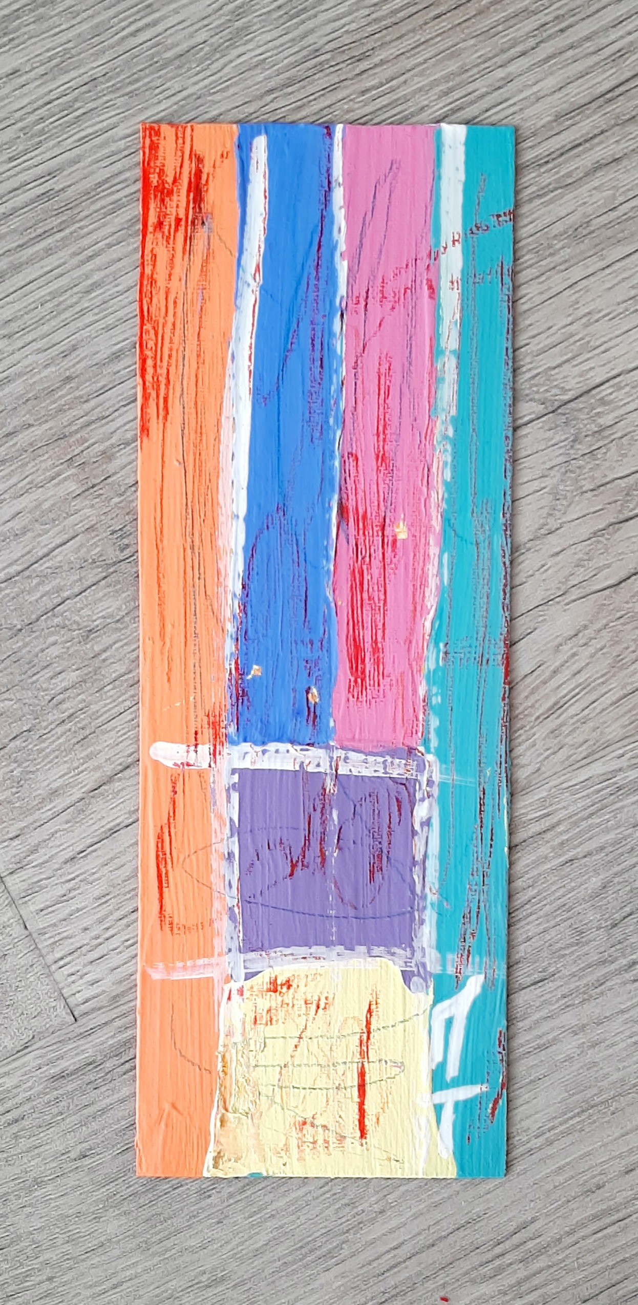Peinture sur feuille, mini-oeuvre de 20x7 cm, utilisée comme marque-page, oeuvre unique et originale.