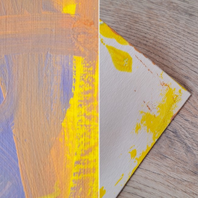 La peinture n'est pas lisse car il y a un peu de texture. Les couleurs peuvent varier d'un écran à un autre. L'oeuvre étant l'originale et faite à la main, il y a quelques tâches au dos de la feuille.