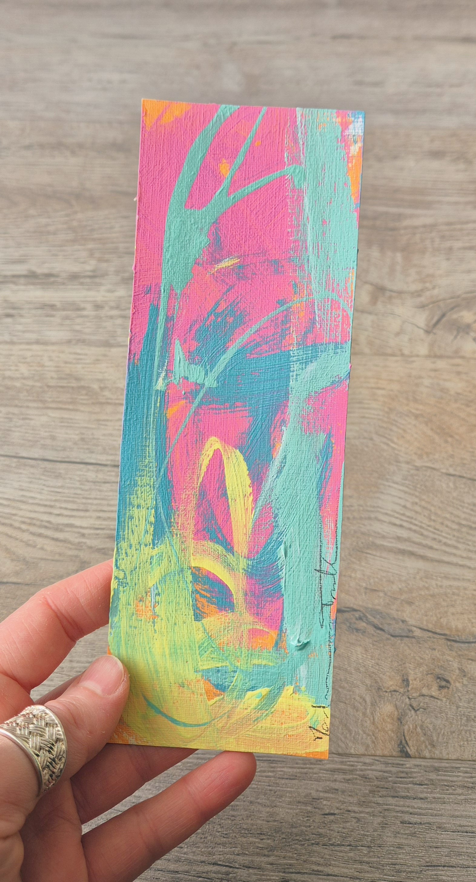 Peinture sur feuille, mini-oeuvre de 20x7 cm, utilisée comme marque-page, oeuvre unique et originale.