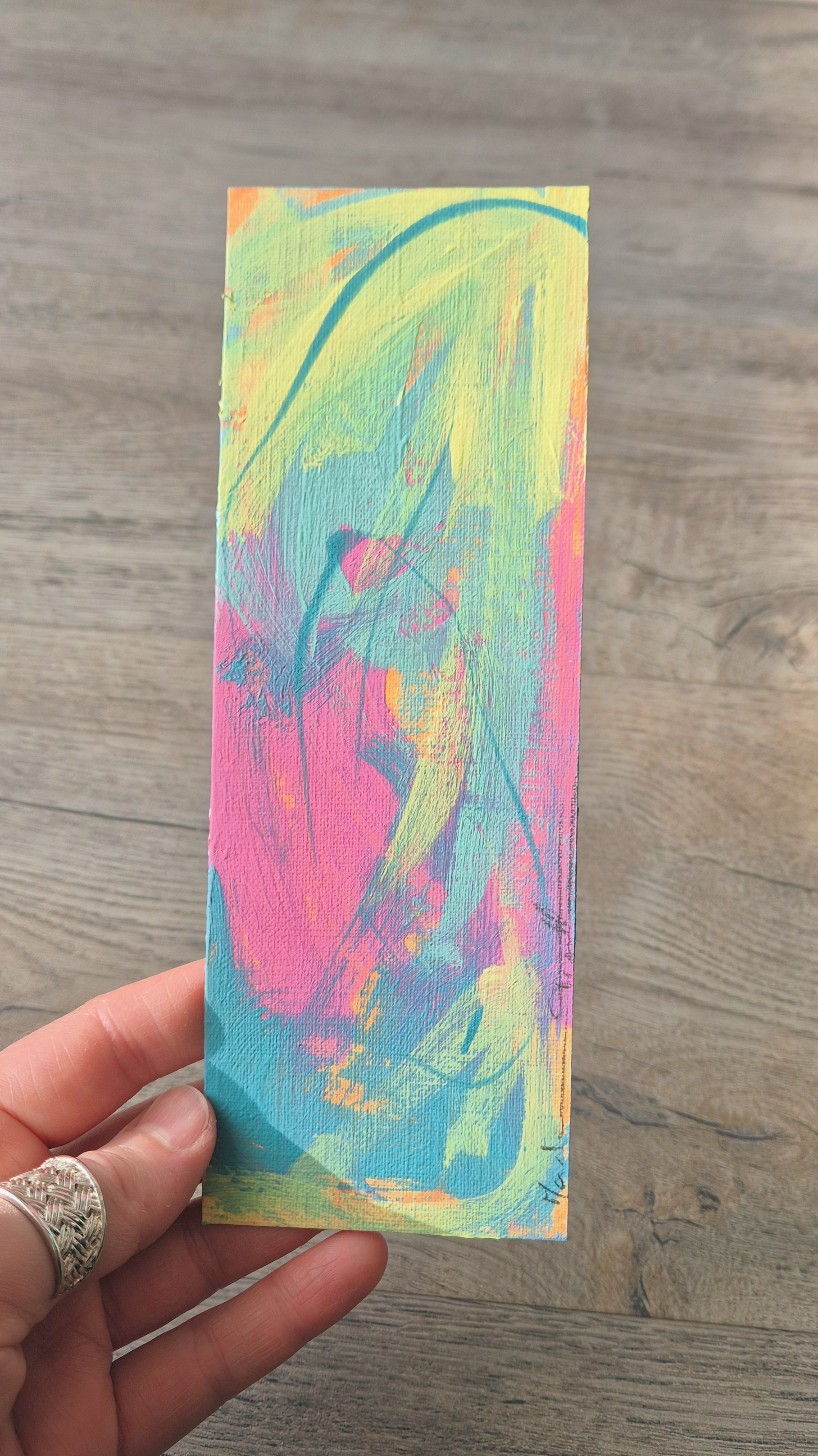 Peinture sur feuille, mini-oeuvre de 20x7 cm, utilisée comme marque-page, oeuvre unique et originale.