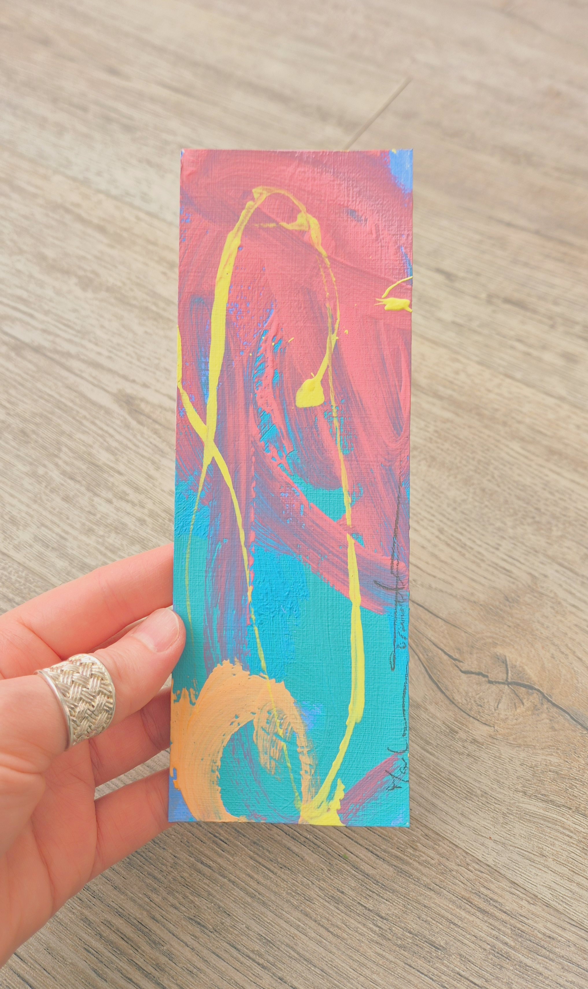 Peinture sur feuille, mini-oeuvre de 20x7 cm, utilisée comme marque-page, oeuvre unique et originale.