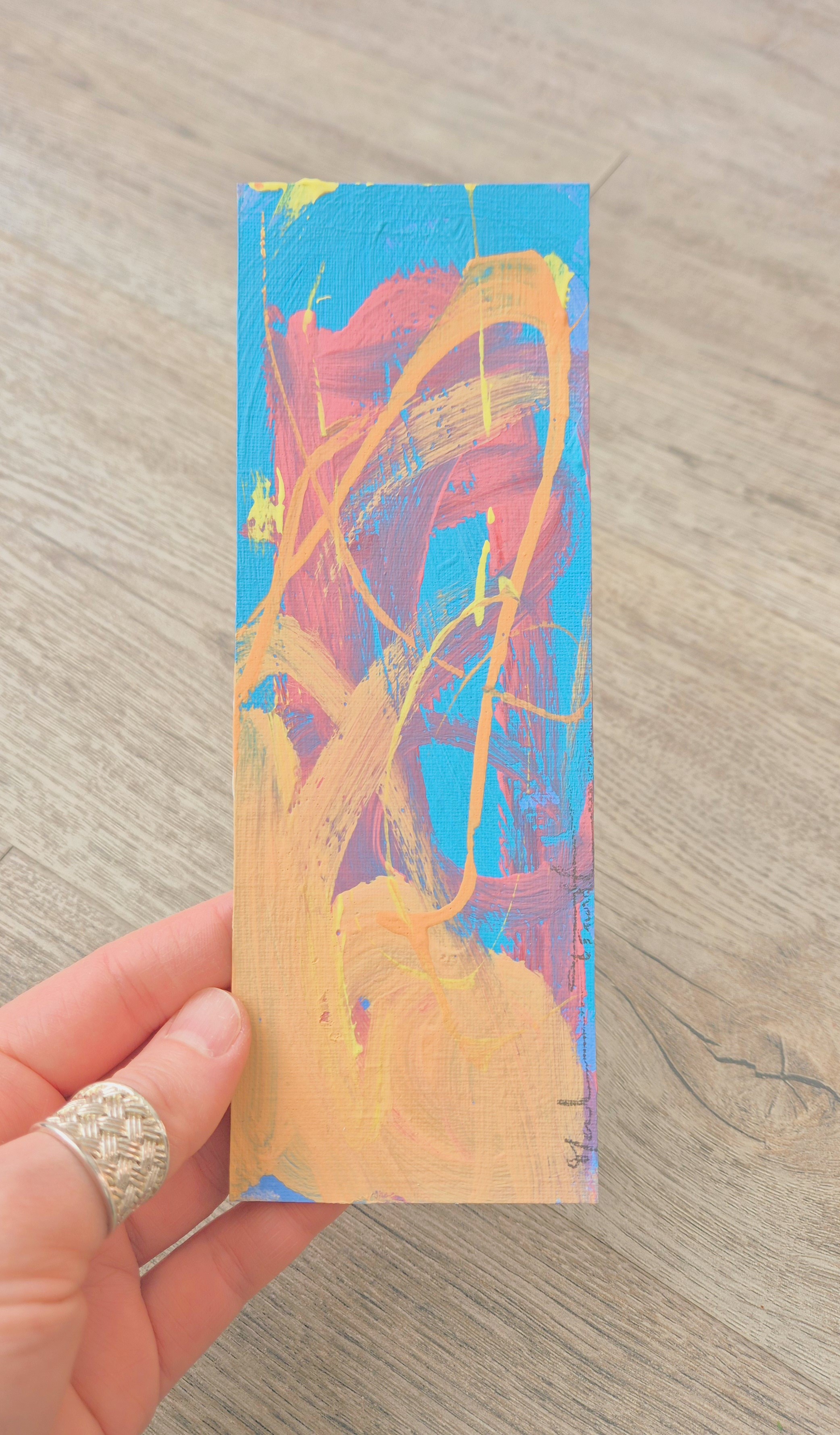 Peinture sur feuille, mini-oeuvre de 20x7 cm, utilisée comme marque-page, oeuvre unique et originale.