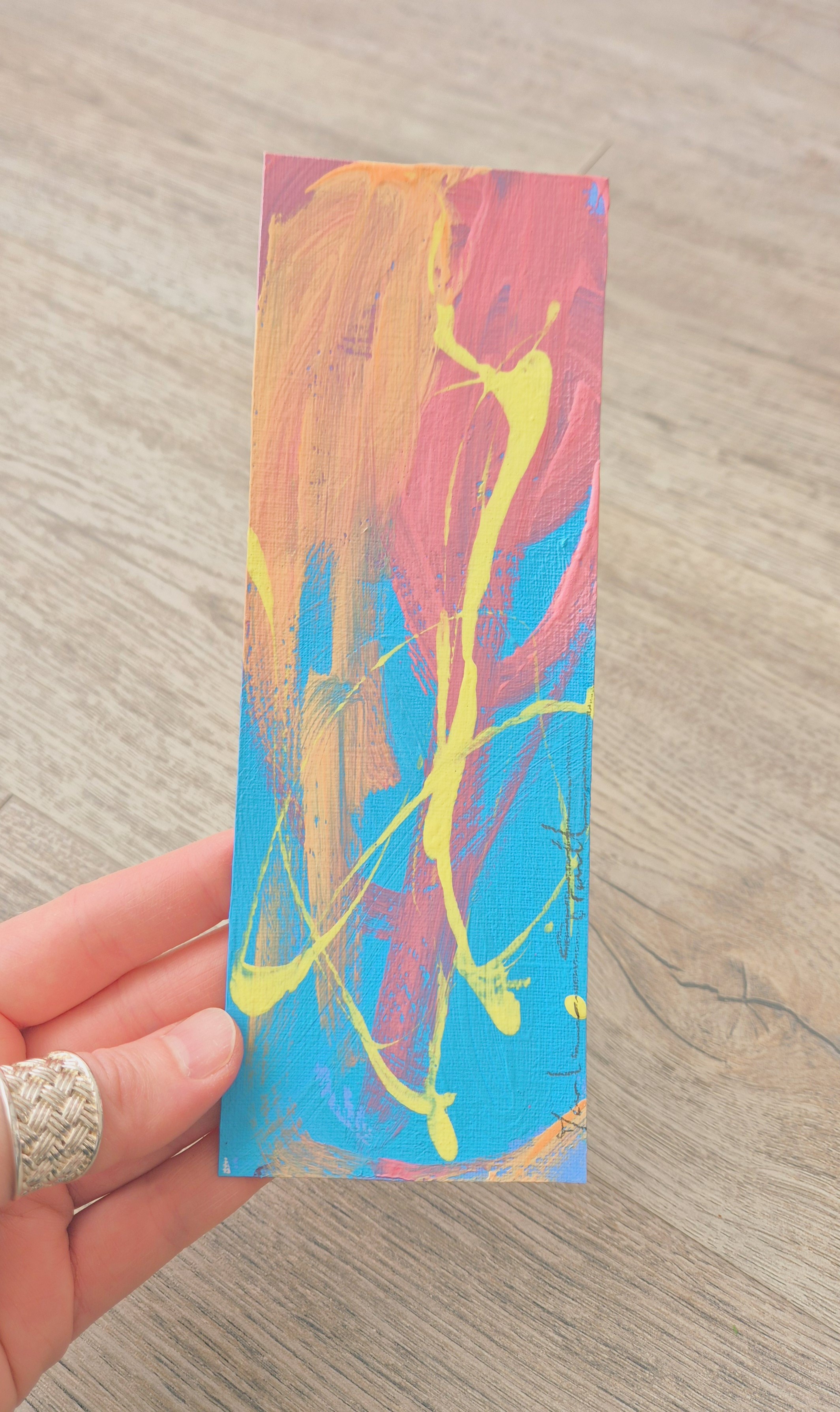 Peinture sur feuille, mini-oeuvre de 20x7 cm, utilisée comme marque-page, oeuvre unique et originale.