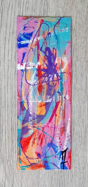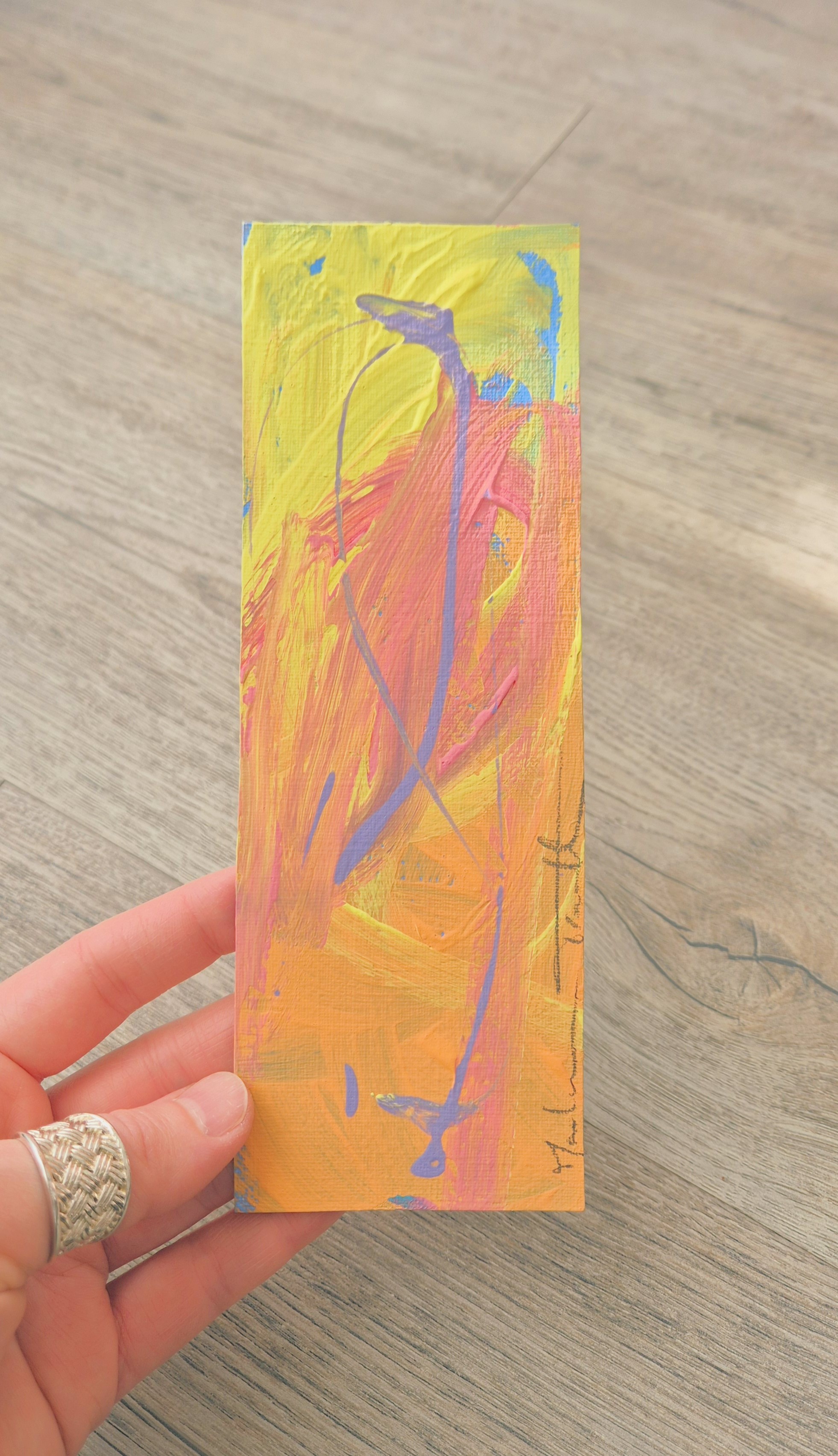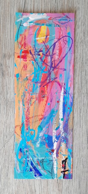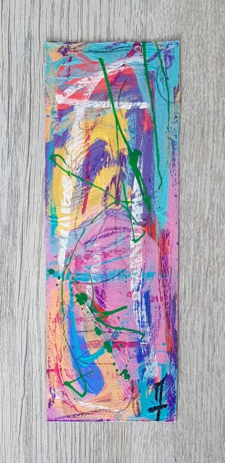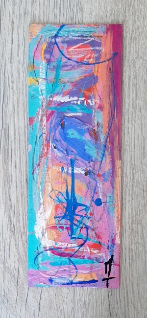 Peinture sur feuille, mini-oeuvre de 20x7 cm, utilisée comme marque-page, oeuvre unique et originale.