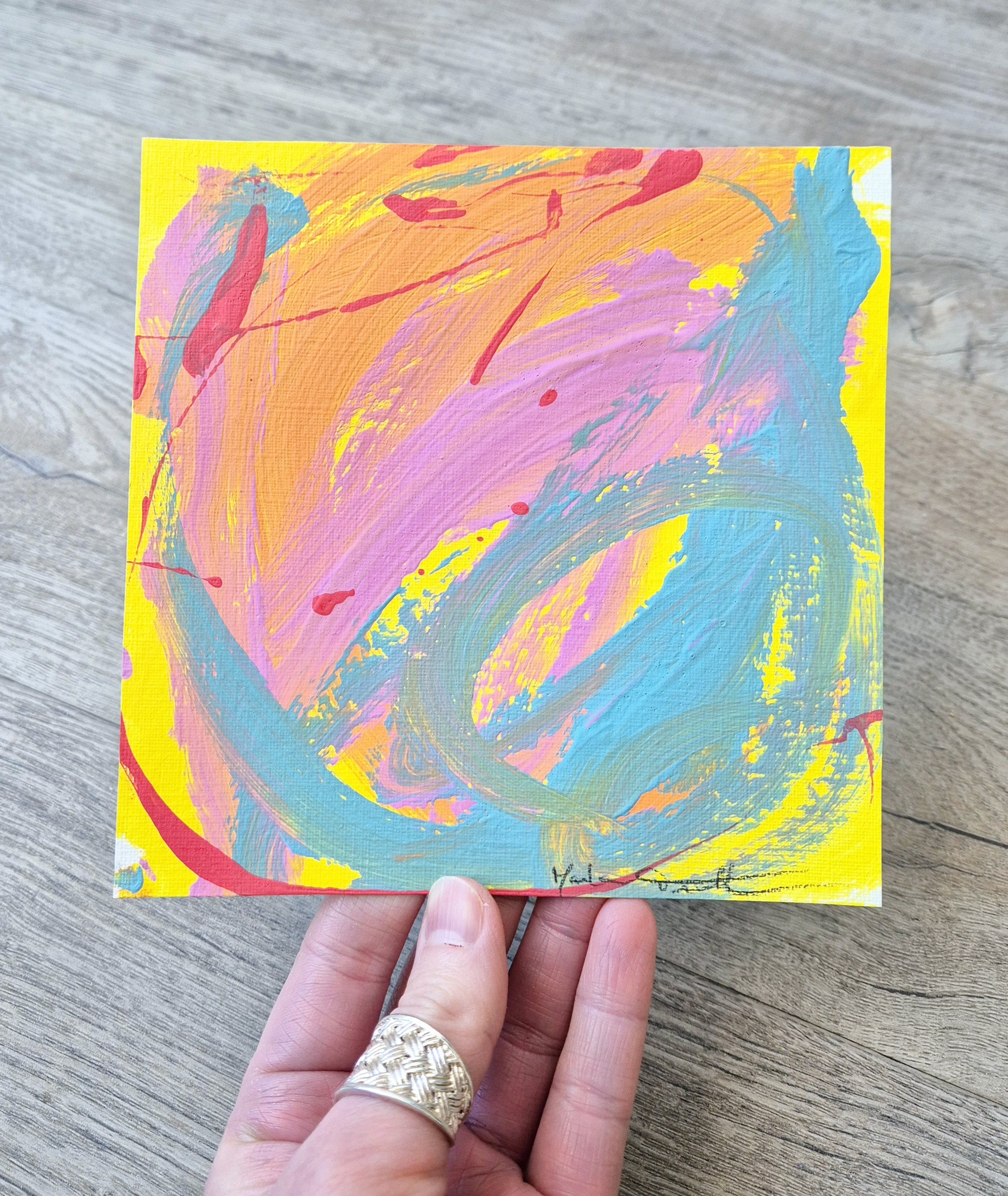 Peinture sur feuille 15x15 cm à encadrer, oeuvre unique et originale, vendue sans cadre.