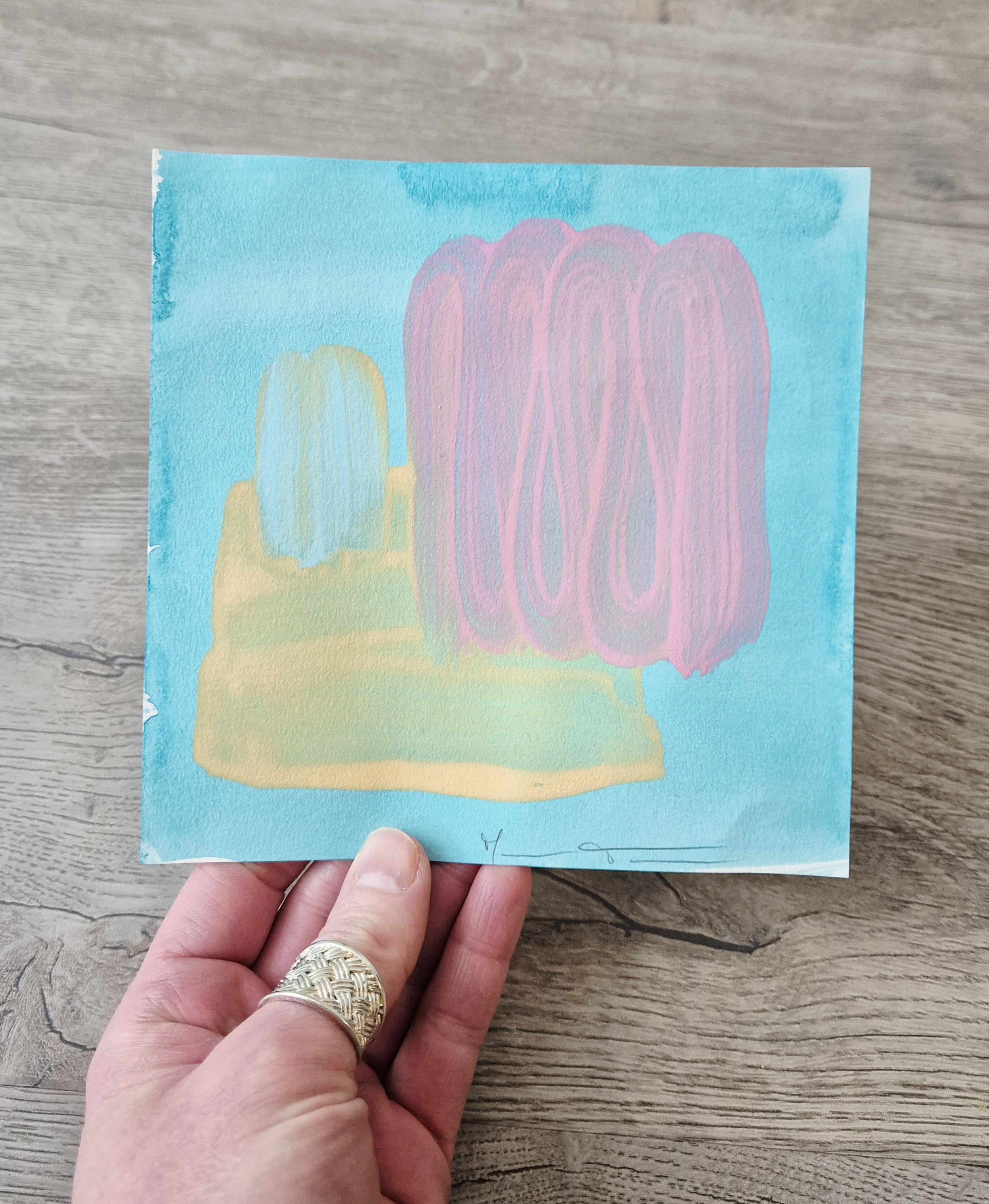 Peinture sur feuille 15x15 cm à encadrer, oeuvre unique et originale, vendue sans cadre.