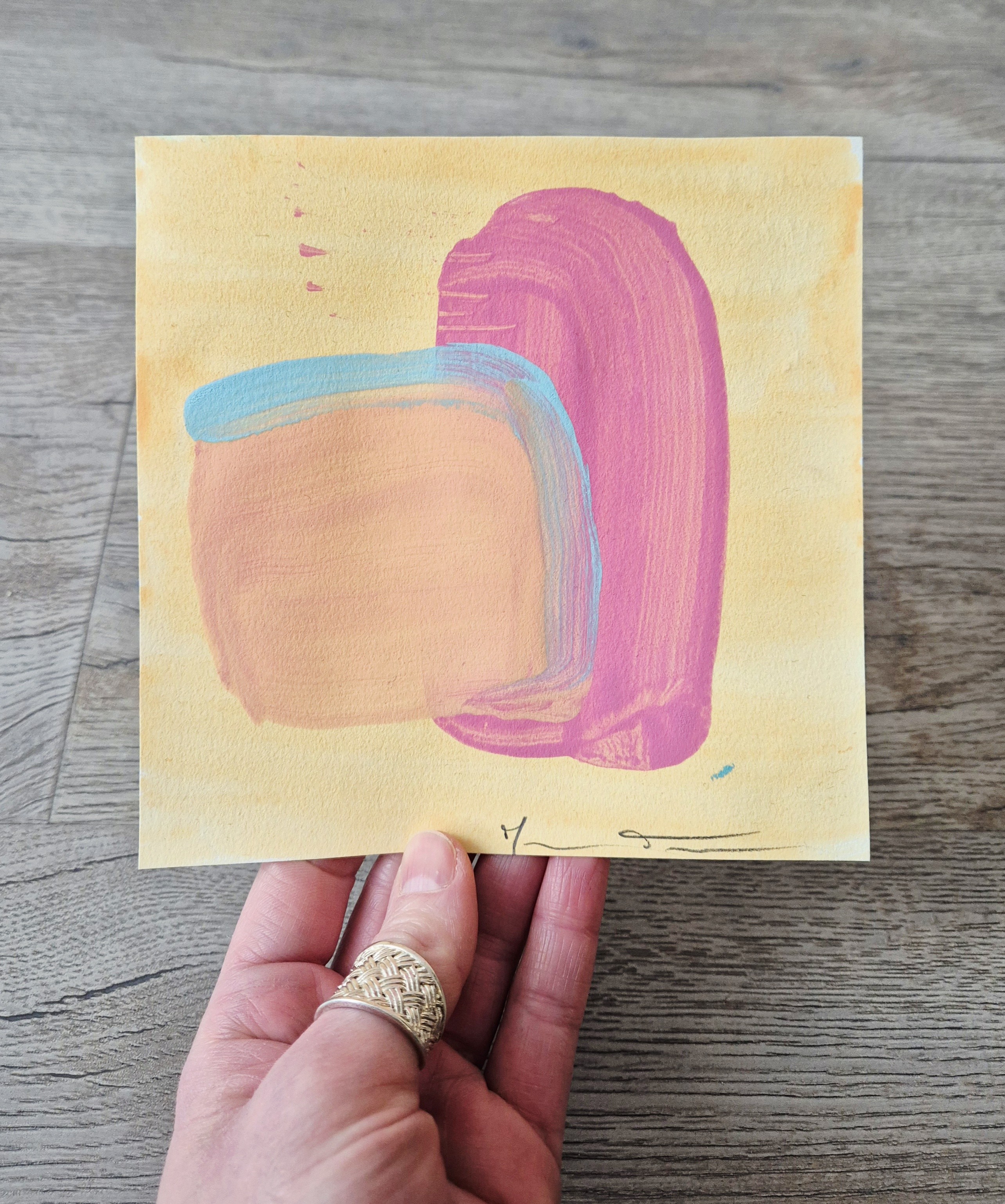 Peinture sur feuille 15x15 cm à encadrer, oeuvre unique et originale, vendue sans cadre. Le fond est plus orangé que sur la photo.
