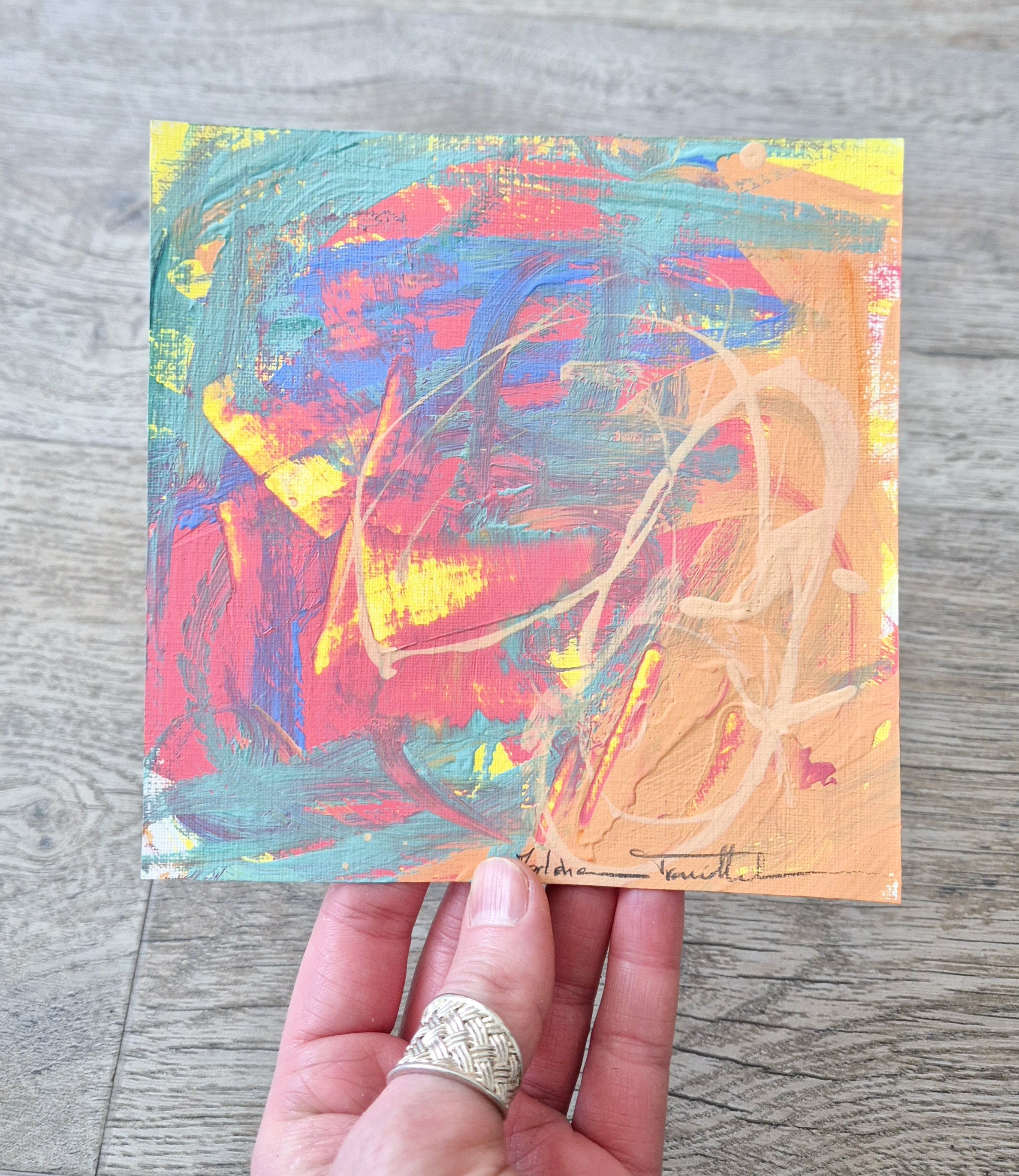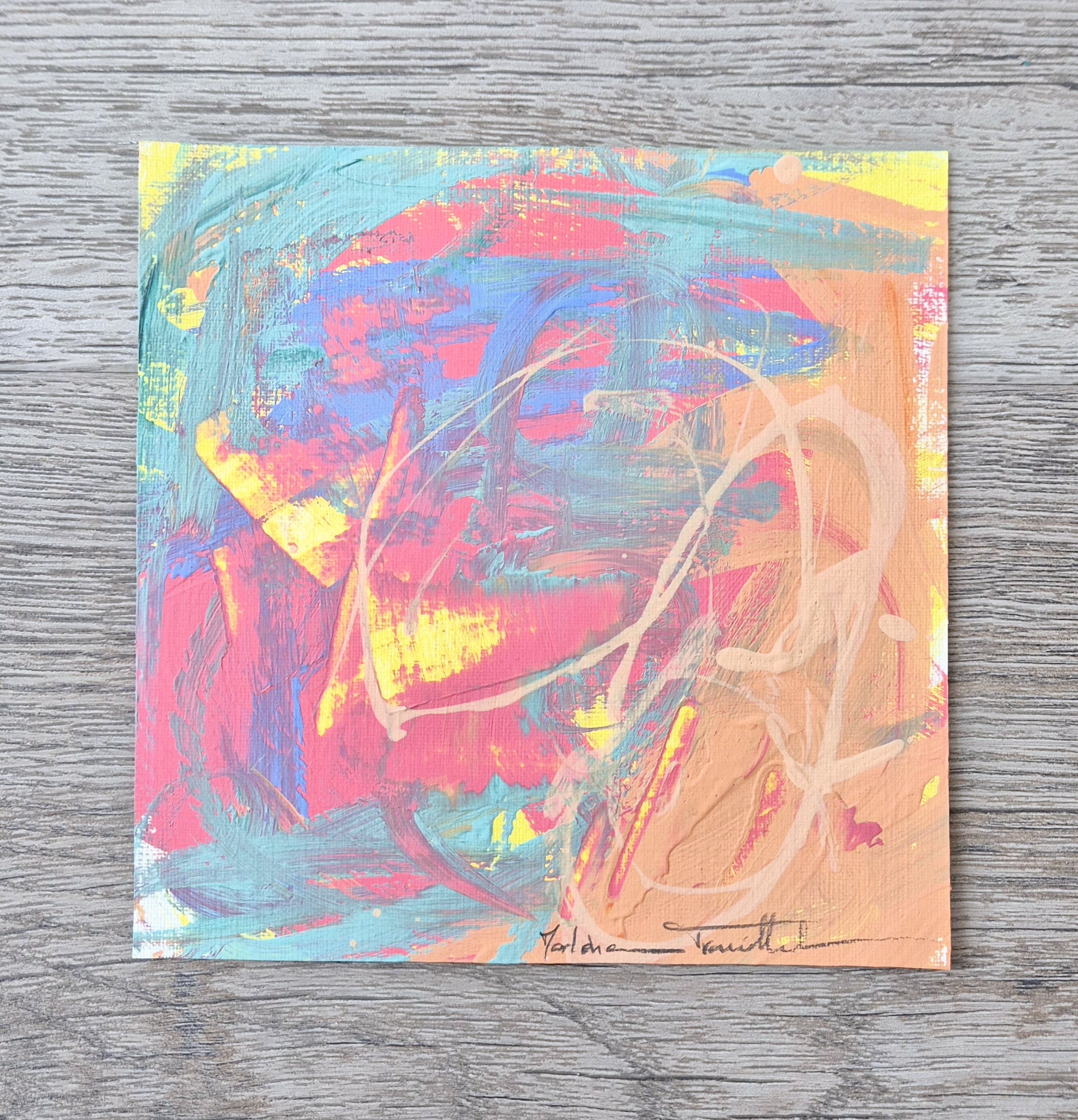 Peinture sur feuille 15x15 cm à encadrer, oeuvre unique et originale, vendue sans cadre.