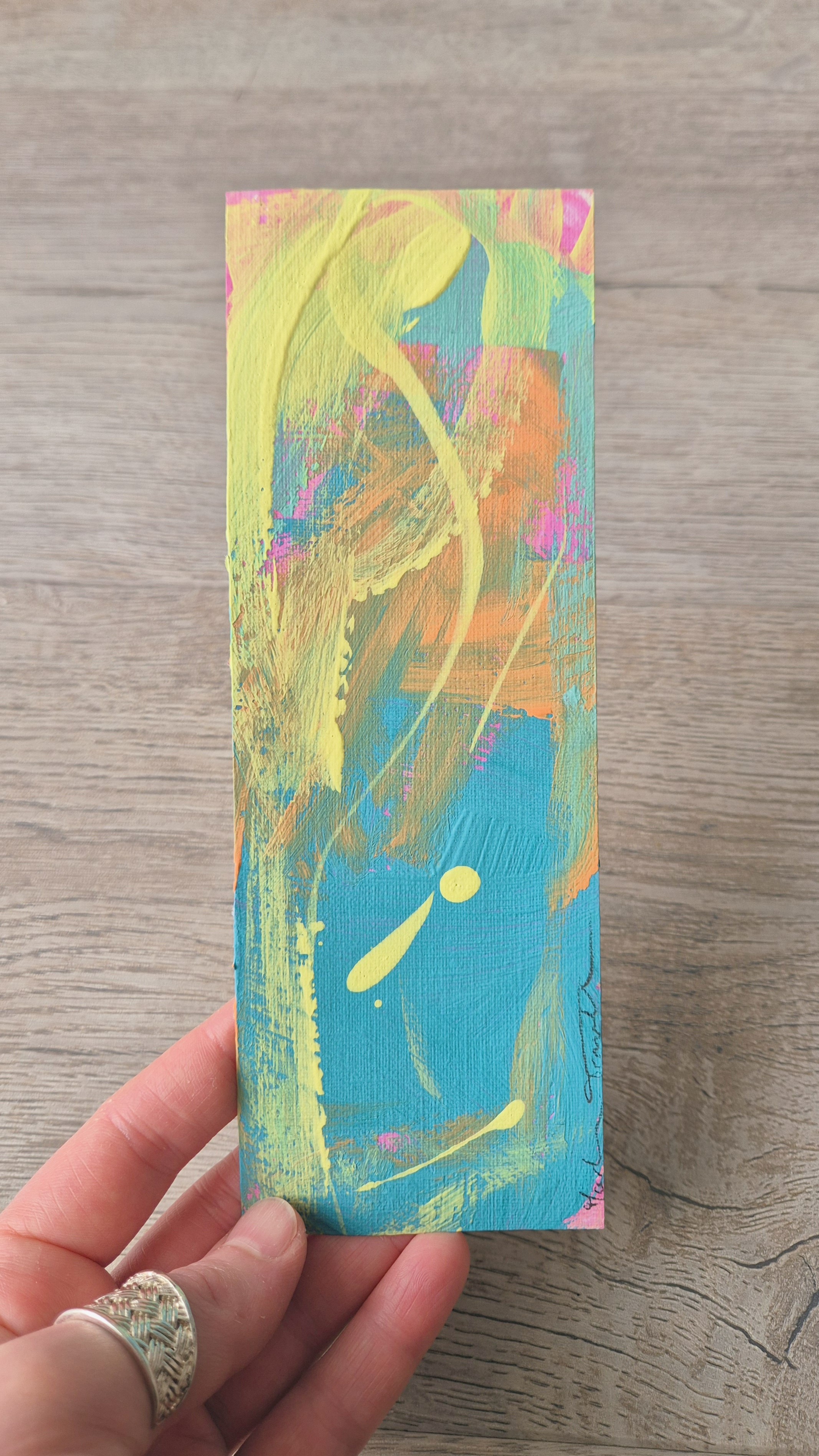 Peinture sur feuille, mini-oeuvre de 20x7 cm, utilisée comme marque-page, oeuvre unique et originale.