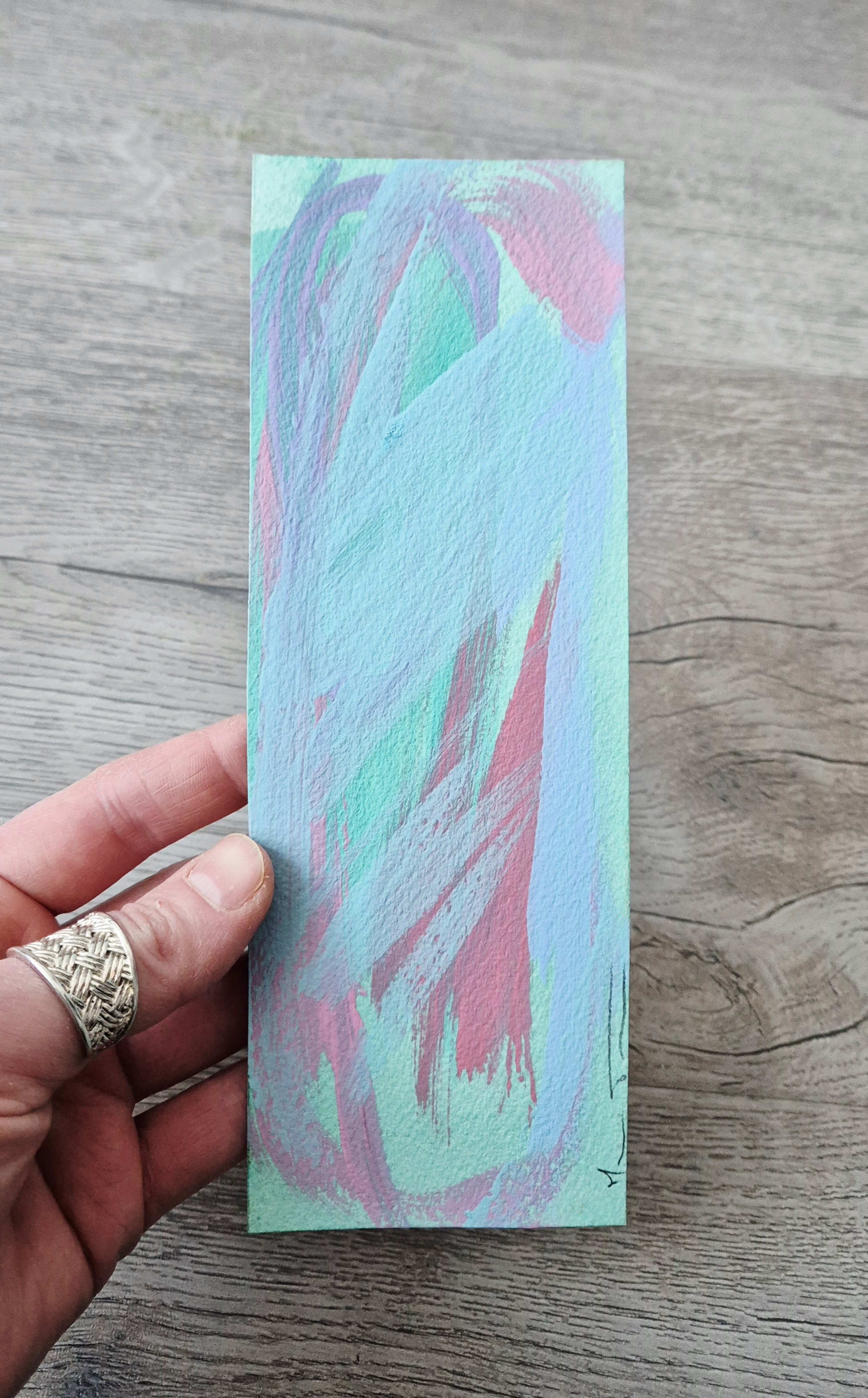 Peinture sur feuille, mini-oeuvre de 20x7 cm, utilisée comme marque-page, oeuvre unique et originale.