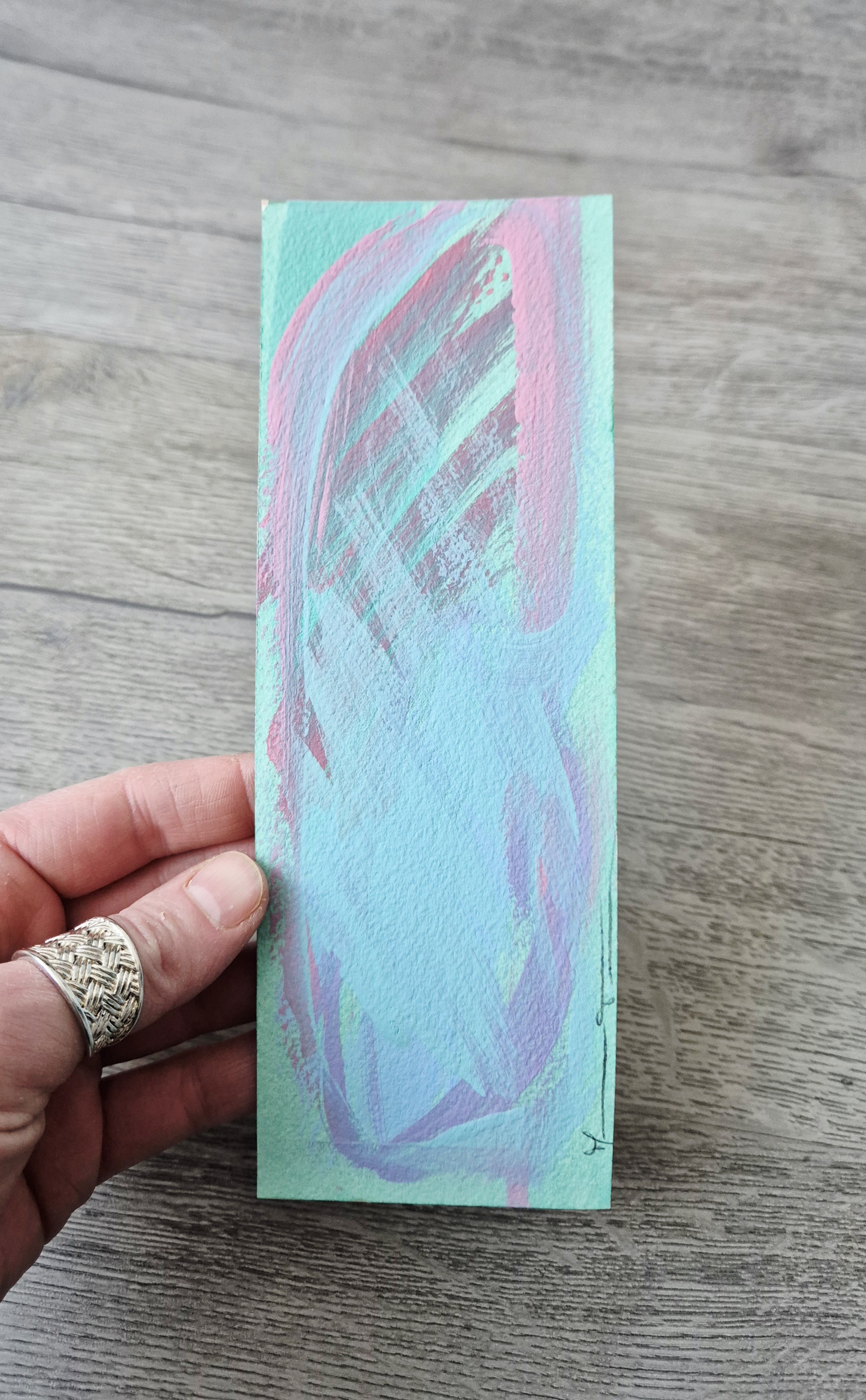 Peinture sur feuille, mini-oeuvre de 20x7 cm, utilisée comme marque-page, oeuvre unique et originale.