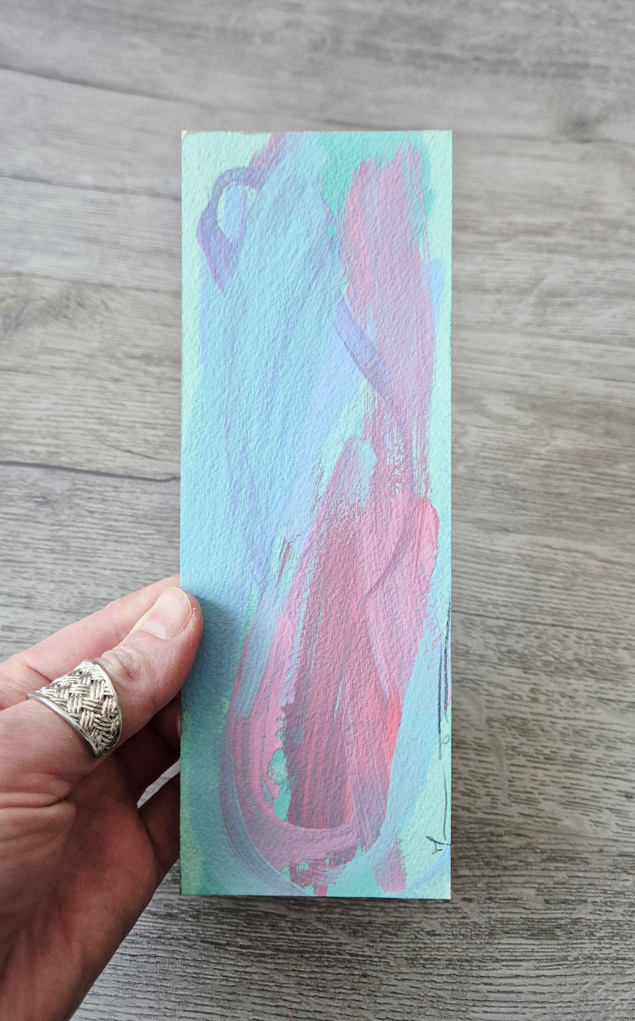 Peinture sur feuille, mini-oeuvre de 20x7 cm, utilisée comme marque-page, oeuvre unique et originale.