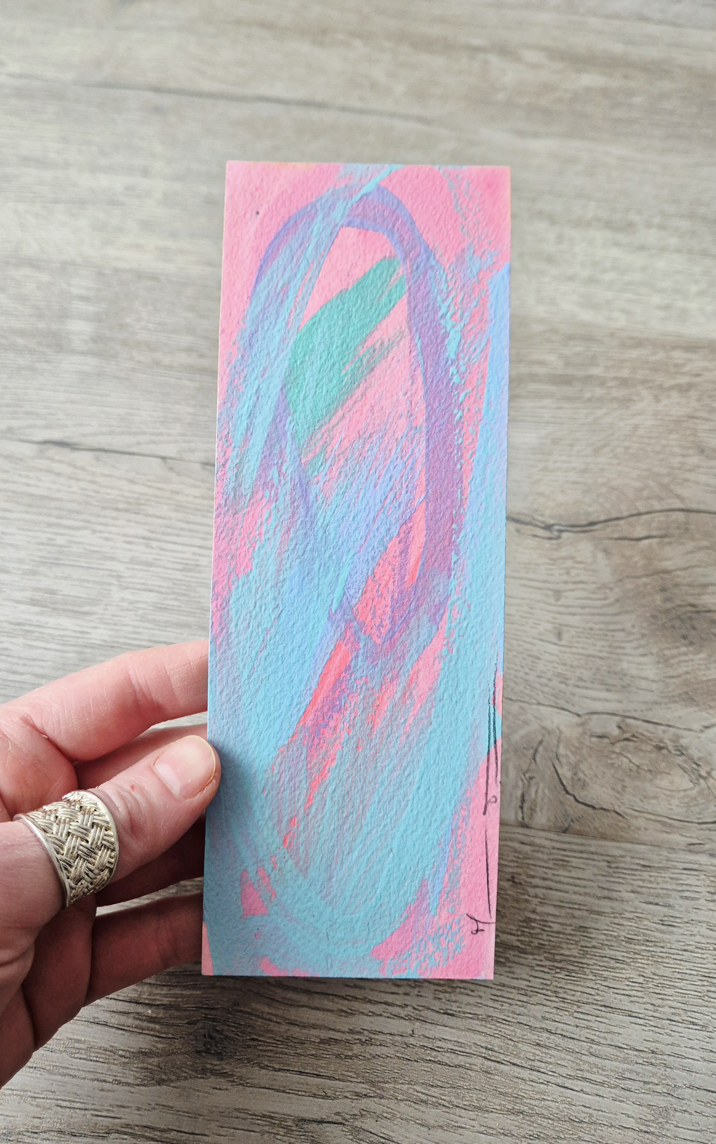 Peinture sur feuille, mini-oeuvre de 20x7 cm, utilisée comme marque-page, oeuvre unique et originale.
